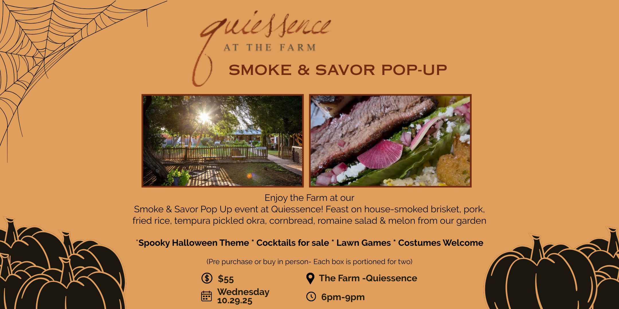 Enjoy the Farm at our Smoke & Savor Pop Up event at Quiessence! Feast on house-smoked brisket, pork, fried rice, tempura pickled okra, [...] |