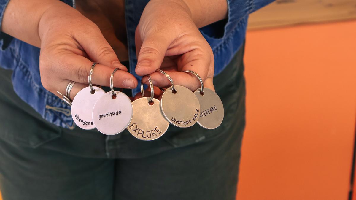 Sarah will share her personal relationship with stamping—how she uses this process as a way to connect with words, moments, and meaning. You’ll have the chance to reflect on a word or short phrase that resonates with you, then learn the basics of metal stamping to create personalized keychains.